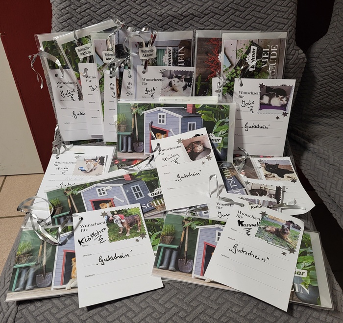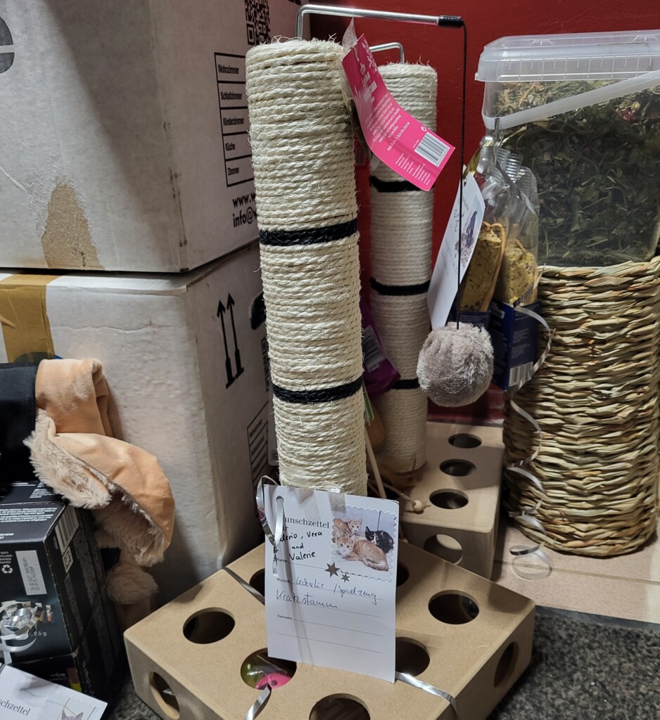 Wir möchten uns ganz herzlich für die vielen tollen Weihnachts­ge­schenke von der Weihnacht­wunschbaum- Aktion bedanken. So konnten wir auch diese Weihnachten wieder unseren Tierheim­be­wohnern eine kleine Freude bereiten.