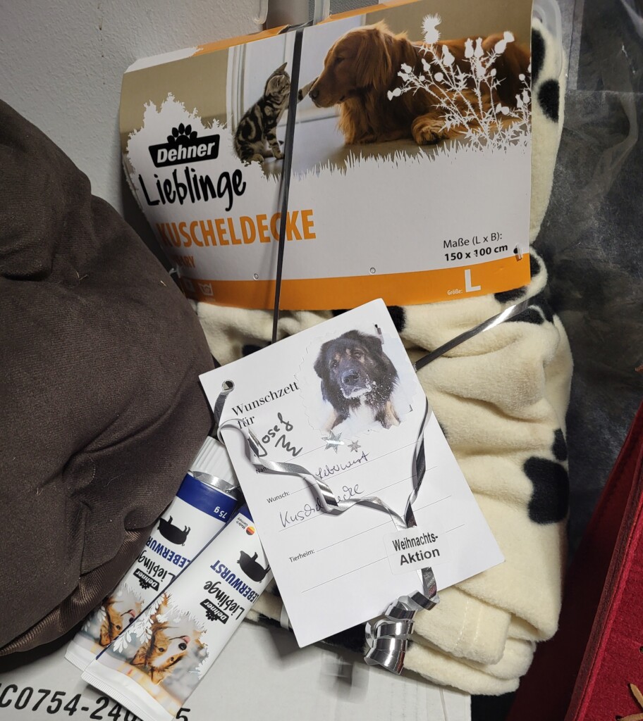 Der kleine süße Dobby war ganz schön aufgeregt, denn er durfte dieses Jahr stell­ver­tretend für die Tierheim Bewohner zur Geschen­kübergabe ins Garten­center Dehner in Eichenzell mitfahren. Da staunte er, so viele tolle Geschenke und keine einzige Wunsch­karte mehr am Baum. Alle Wünsche wurden erfüllt, ob Leckerlies, Kuschel­höhlen, Kratz­bäume, Spezi­al­futter, Decken, Leinen, Halsbänder, Spiel­sachen und vieles mehr, für jeden war etwas dabei.