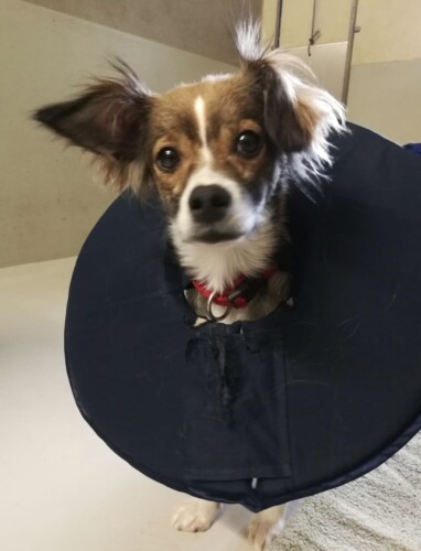 Damals habe ich ein Bild von ihr auf eurer Seite gesehn und es war schon um mich geschehen. Sie saß frisch operiert mit ihren beiden Welpen Paula und Petrus, mit einer Halskrause und angehobener Pfote in der Ecke und hatte sehr viel Angst. Da war mir sofort klar, dass ich diese Maus gerne näher kennen lernen möchte. So fuhr ich ein paar Tage später von Würzburg aus zu euch, um Pina zu besuchen. Es war Liebe auf den ersten Blick! Es folgte noch ein weiterer Besuche mit meiner Ersthündin Sally und es passte auf anhieb. Somit durfte Pina dann beim dritten Besuch mit uns mitkommen und ihr neues Leben konnte starten. Mir war von Anfang an bewusst, dass es mit ihr vermutlich nicht einfach werden wird. Aber genau darauf hatte ich Lust!