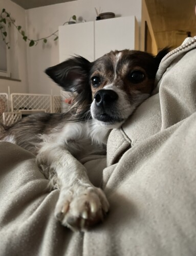 Da Pina urspünglich aus Rumänien kam und letztendlich aus einem Animal Hoarding-Fall mit ihren Welpen beschlagnahmt wurde, hatte die kleine zarte Seele schon einiges hinter sich und war leider sehr ängstlich, schreckhaft, misstrauisch und schnappte auch nach mir. Mittlerweile liegt ein langer Weg hinter uns, der mit viel Geduld, Ausdauer, Verständnis und Liebe verbunden ist. Und was sall ich sagen? Jede einzelne Sekunde hat uns zu einem tollem Team werden lassen, dass sich vertraut und sich aufeinander verlassen kann. Ich würde diese Entscheidung jederzeit wieder genau so treffen und bin so unfassbar dankbar, dass Pina in meinem Leben ist.