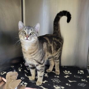 - Farbe: Grautiger mit weißen Abzeichen