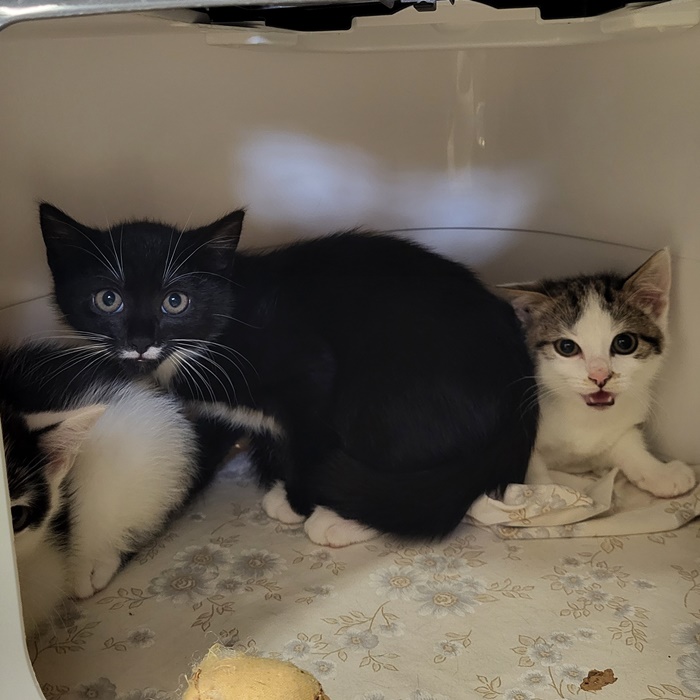 Home / Tiere / Katzen / Kater / Burghard und BerndBurghard und Bernd21.07.2025Rasse: EKHGeschlecht: männlichgeb: 06.2025Fundort: SteinauBurghard: weiß-schwarzBernd: schwarz-weißBele: Grautiger mit Weiß (vermittelt 21.08.2025) Categories: Kater, Katzen, Kitten, Tiere Description DescriptionMama: MikraNähere Beschreibung folgt!