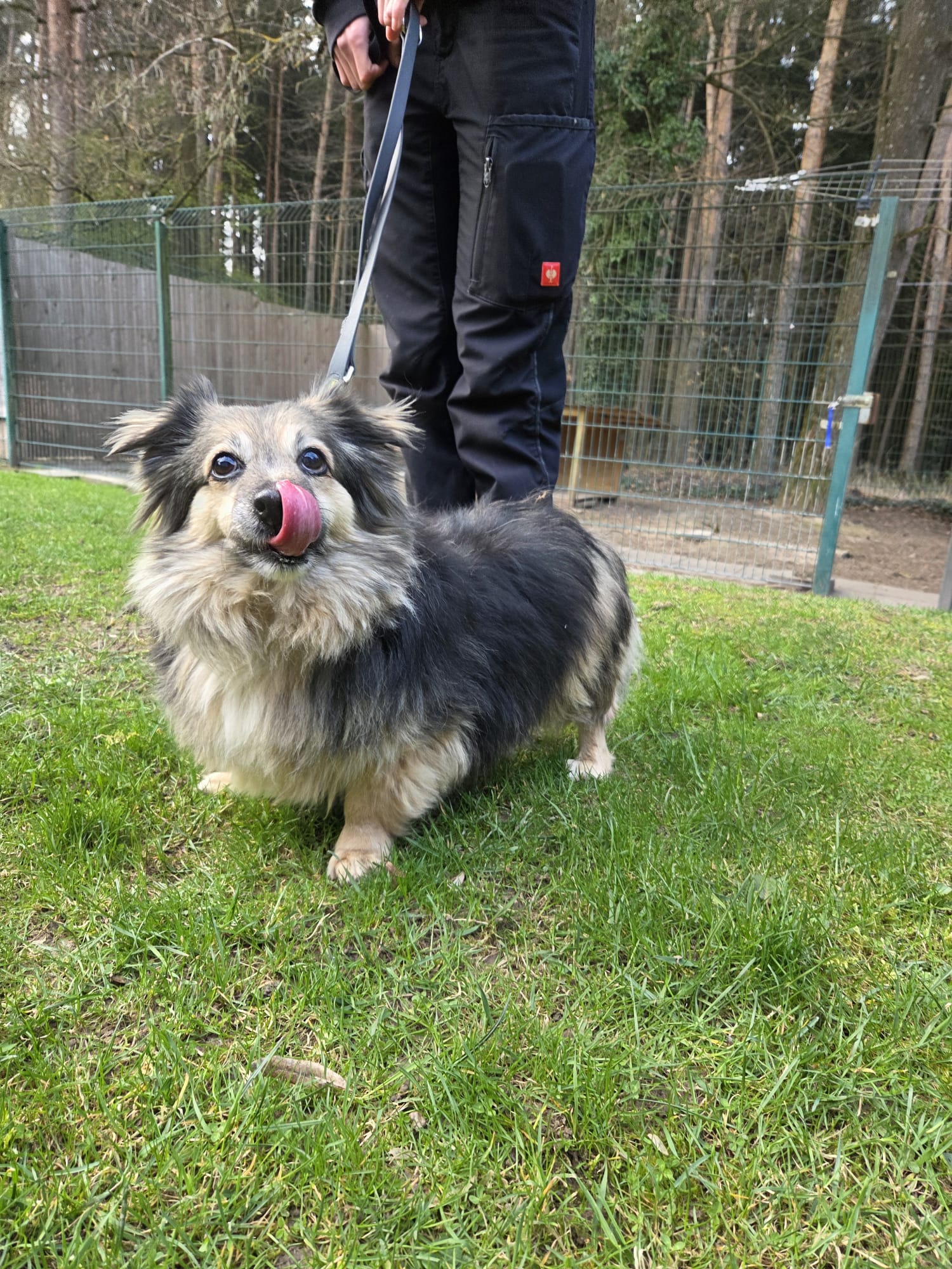 Leika kam zu uns, da sich ihre Besitzer aus Alters­gründen leider nicht mehr um sie kümmern konnten. Man merkt, dass sie sehr geliebt wurde, denn sie ist Menschen gegenüber aufge­schlossen und freundlich. Aller­dings fällt leider auch auf, dass man sich nicht mehr artge­recht um sie kümmern konnte: sie ist leider viel zu dick und auch das Fell war verfilzt. Von Berichten wissen wir, dass sie länger nicht mehr Gassi geführt wurde.