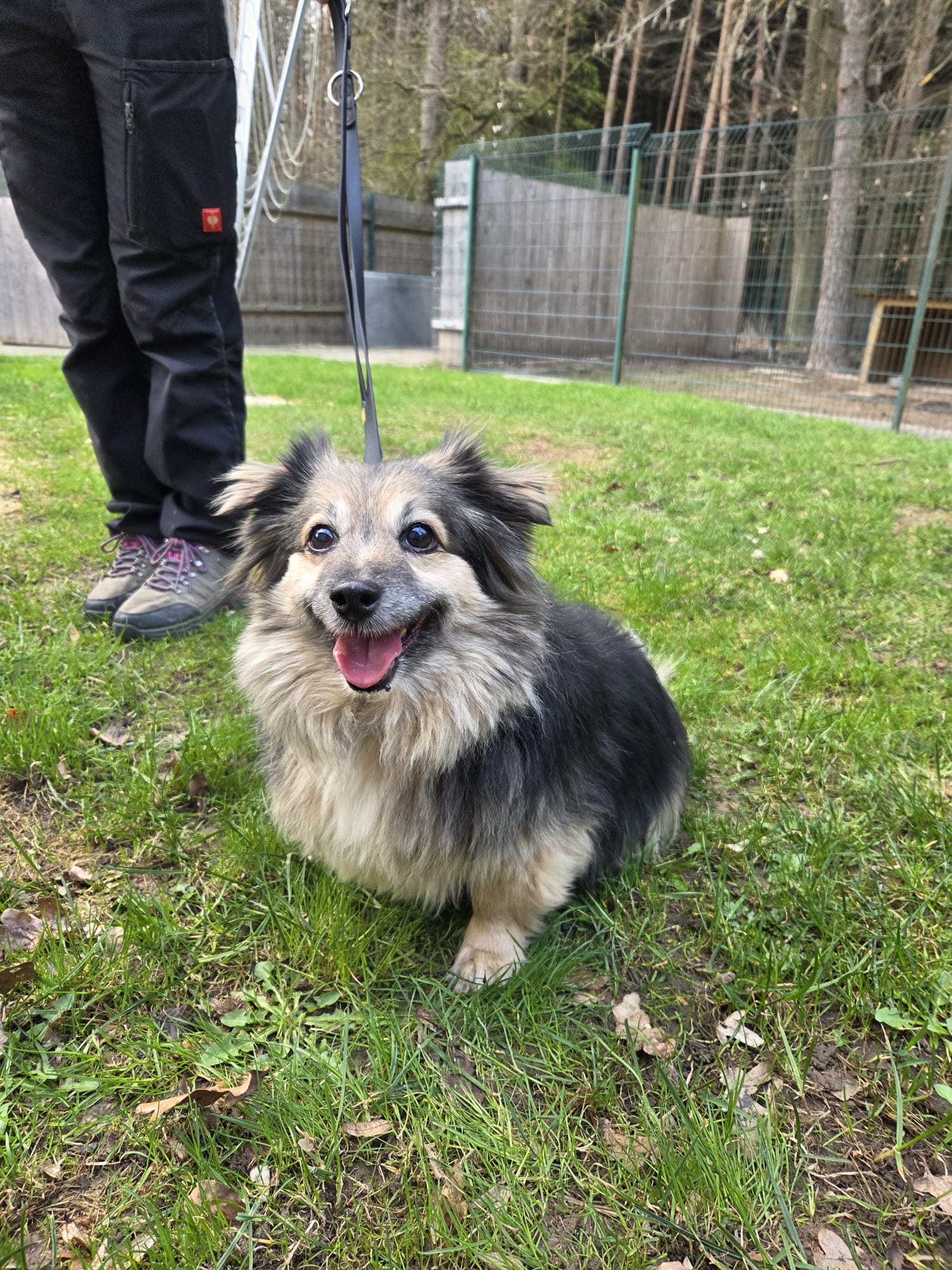 Sie ist noch nicht lange bei uns, zeigt sich aber bisher komplett lieb und genügsam. Sie geht an der Leine mit, zieht aber etwas. Andere Hunde inter­es­sieren sie nicht sonderlich. Die Fellpflege macht sie gut mit. Ob sie alleine bleiben kann, können wir leider nicht sagen. Bislang musste sie das nicht.