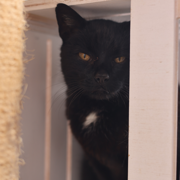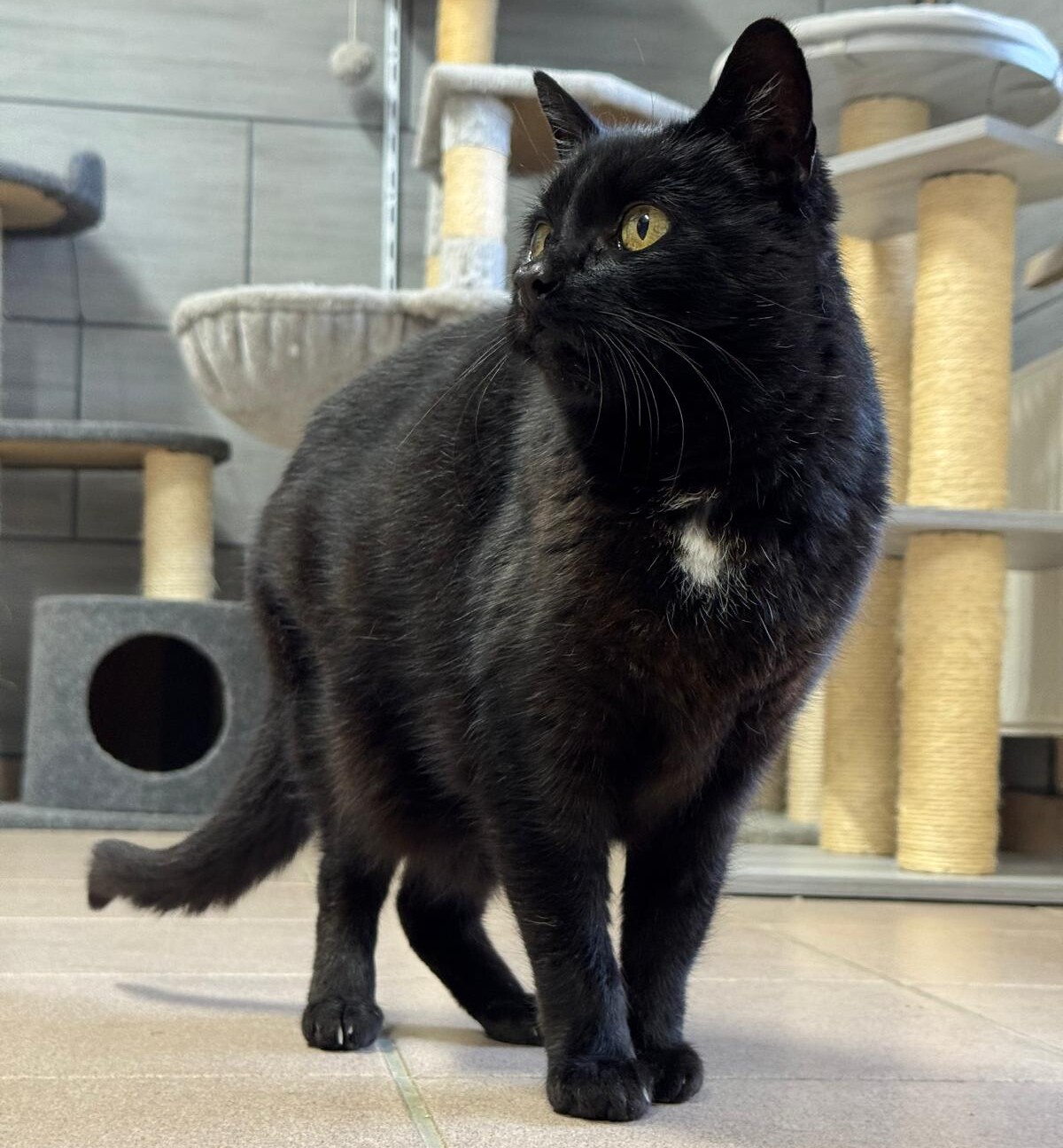 Maya ist schon eine Katzenoma mit ihren 15 Jahren. Sie kam zu uns ins Tierheim, da ihr Frauchen sehr krank wurde und sich nicht mehr um sie kümmern konnte. Maya ist eine sehr gepflegte Katzendame mit einem wunderschönen lackschwarzen Fell, nur ein kleines weißes Fleckchen auf der Brust und besonders fallen ihre großen goldfarbenen Augen auf. Sie will im Tierheim eher ihre Ruhe haben und sitzt meistens draußen auf dem Balkon in ihrer Höhle. Aber wenn man auf sie zukommt, kommt sie schnell heraus und genießt die Streicheleinheiten. Leider hat ihr Alter die Interessenten bisher abgeschreckt. Sie kann aber bestimmt noch einige Jahre ein Sofa verschönern und Schnurrkonzerte geben, wenn sie nur ausreichend verwöhnt und gestreichelt wird. Maya möchte nach einer Eingewöhnungszeit wieder Freigang bekommen.