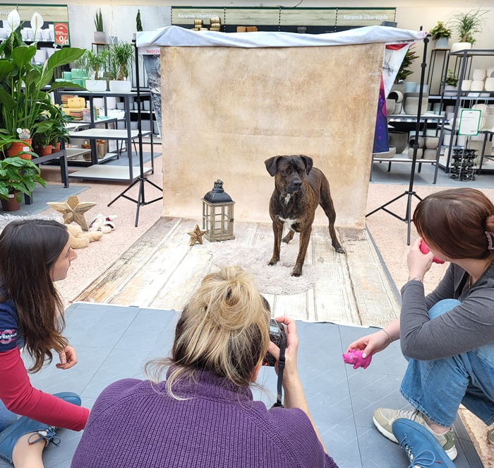 Bereits um 9:30, als das Team noch mit dem Aufbau beschäftigt war, kamen schon die ersten Models vorbei. Pünktlich um 10:00 ging es los. Da der Andrang so groß war fotografierte Frau Junker solange, wie es die Lichtverhältnisse zuließen. Es tat dem Tierheim-Team schrecklich leid, dass sie die letzten Models nicht mehr annehmen konnten.