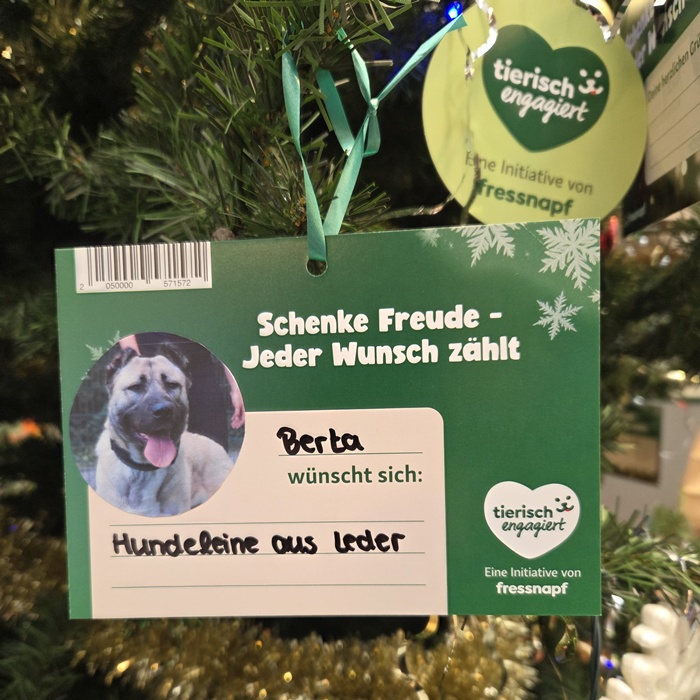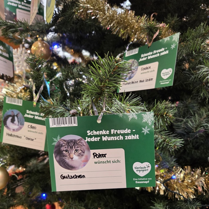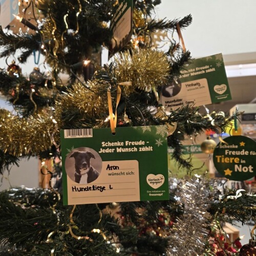 Auch in diesem Jahr dürfen sich unsere Tierheimbewohner über eine ganz besondere Aktion freuen: Im Fressnapf XXL steht wieder ein wunderschöner Wunschbaum, geschmückt mit den Herzenswünschen unserer Tiere.